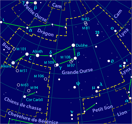 Ainsi, par exemple, dans la Grande Ourse, Dhube est à 124 années-lumière environ tandis que Merak (β) est à 79 années-lumière.
